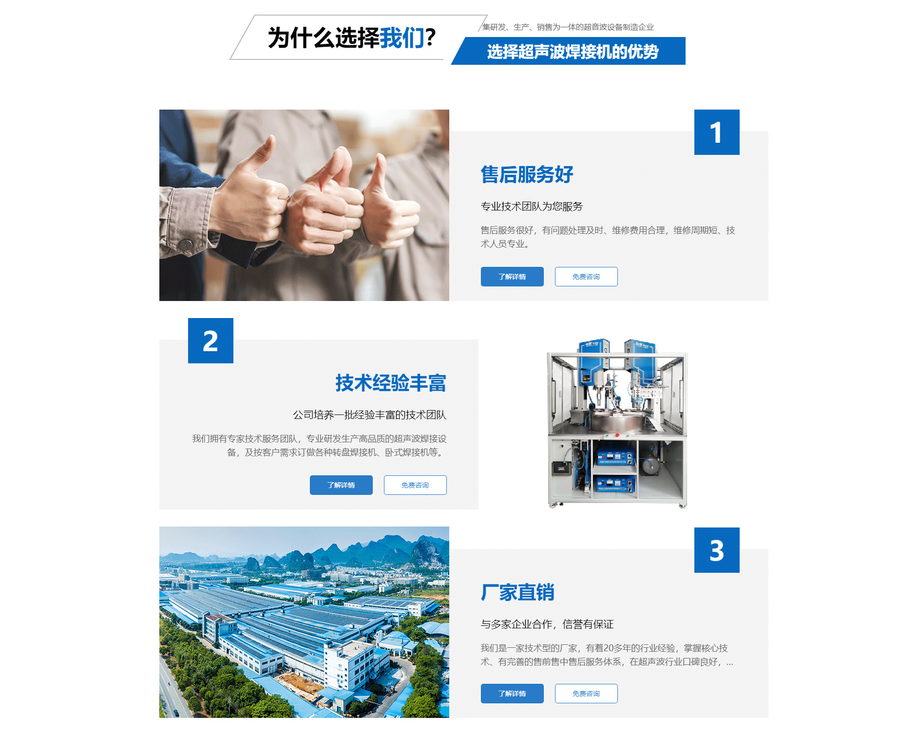 關(guān)于我們廈門(mén)勁榮機(jī)械設(shè)備有限公司是一家集研發(fā)、生產(chǎn)、銷(xiāo)售為一體的超音波設(shè)備制造企業(yè),主要產(chǎn)品包括多規(guī)格型號(hào)的超音波塑膠熔接機(jī)、熱板式塑料焊接機(jī)、多工位轉(zhuǎn)盤(pán)焊接機(jī)、振動(dòng)摩擦焊接機(jī)、旋轉(zhuǎn)式塑膠熔接機(jī)及配套的工裝夾具等。公司自2003年成立以來(lái),一直致力于產(chǎn)品不斷完善中,并追求產(chǎn)品的精益求精,于2004年向國(guó)家商標(biāo)局注冊(cè)了“勁榮”牌商標(biāo),2009年榮獲廈門(mén)市商標(biāo)。 經(jīng)過(guò)多年的努力,公司已經(jīng)發(fā)展成為占地面積2000余平方米、擁有員工50余人的企業(yè)。公司一直將“品質(zhì)是企業(yè)發(fā)展的原動(dòng)力”作為經(jīng)營(yíng)理念,嚴(yán)把質(zhì)量關(guān),建立了一整套有效的安全生產(chǎn)及管理模式,不僅贏得了同行的認(rèn)可,更取得了客戶(hù)的信賴(lài),先后與九牧集團(tuán)、路達(dá)工業(yè)、建霖集團(tuán)、西伯電子、蒙發(fā)利實(shí)業(yè)、松霖科技、銥科集團(tuán)、科司特電子等公司建立了長(zhǎng)期的合作關(guān)系。 面對(duì)已經(jīng)取得的成績(jī),我們不驕不滿(mǎn),因?yàn)樯钪獦I(yè)績(jī)只能代表過(guò)去,只有靠良好的產(chǎn)品質(zhì)量和完善的售后服務(wù)才能在客戶(hù)中口碑相傳,在...